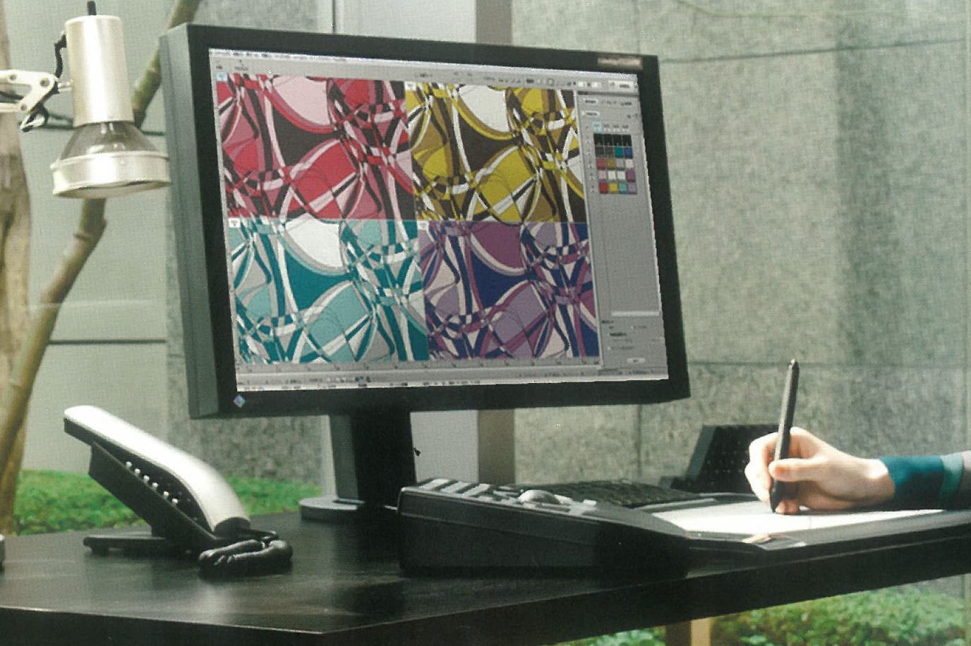 選択された作品はそれぞれの用途に沿ったデザイン処理をお受けいたします、作品を再度生地に染める場合にはリピート対応、カラー処理等のデザイン処理をいたします。